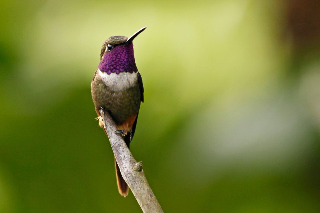 Entre otras especies destacadas que podremos observar se encuentran Chestnut-headed Oropendola, Crimson-rumped Toucanet, así como los coloridos tangaras Rufous-throated, Silver-throated, White-lined y Glistening-green. También buscaremos especies como Orange-bellied Euphonia y Tricolored Brushfinch, además de una maravillosa variedad de colibríes, entre ellos el espectacular Violet-tailed Sylph, Empress Brilliant, Green Thorntail, Rufous-gaped Hillstar, Crowned Woodnymph y White-whiskered Hermit.