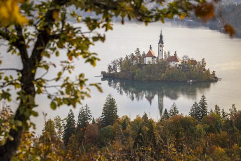 Bled está considerado como uno de los pueblos más bonitos de Europa. Este lago de origen glaciar situado en los Alpes Julianos lo tiene todo para una perfecta fotografía de otoño; aguas cristalinas que cambian del color verde al azul según el día, rodeado de bosques y con una frondosa vegetación que veremos teñida de ocres y naranjas y una pequeña isla natural coronada por la pequeña iglesia barroca de Santa María. Un buen comienzo.