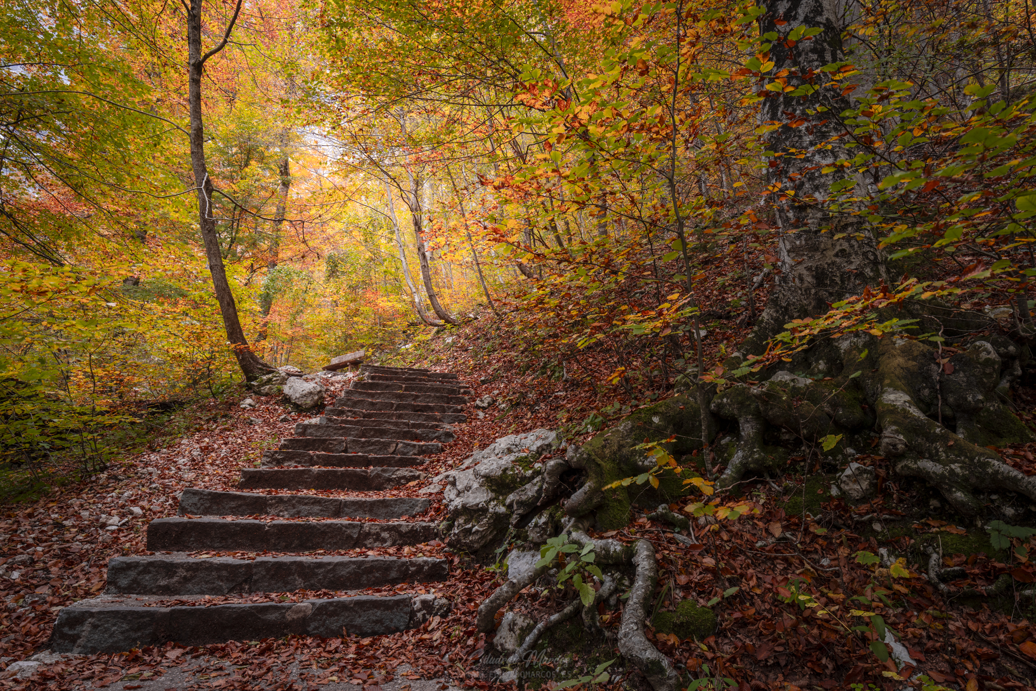 Pasaremos aquí todo el día aprovechando al máximo todos los rincones que tiene para fotografiar este hechizante escenario recorriéndolo a placer entre pasarelas de madera y frondosos bosques teñidos de otoño; más de 30.000 hectáreas de hayedos, abetos y pinos…imagina los colores.