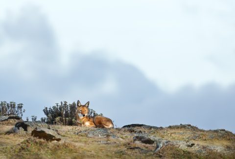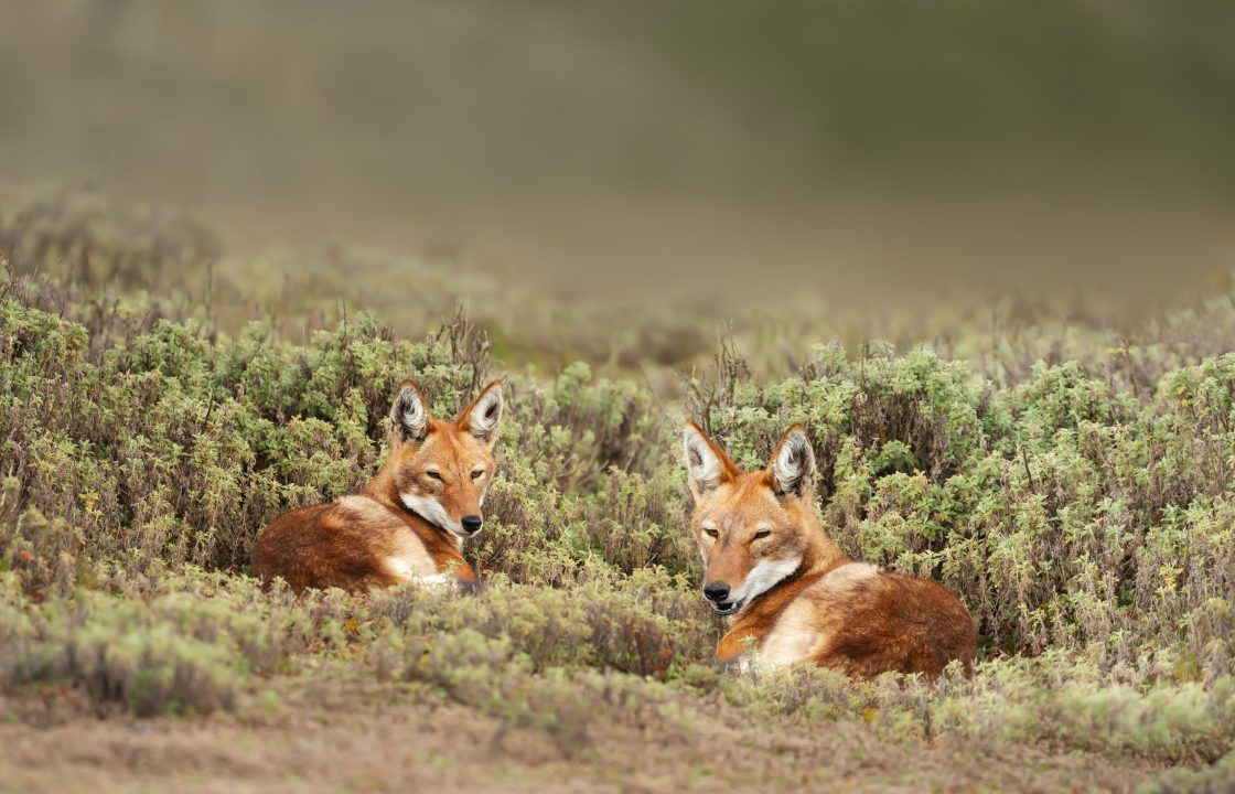La mayor población de este singular y segundo cánido más raro del mundo se encuentra en el Parque Nacional de las Montañas Bale, con más de 250 ejemplares. Conocidos por su singular pelaje rojo y blanco, los lobos etíopes se alimentan principalmente (85%) de roedores que encuentran en su hábitat alpino.