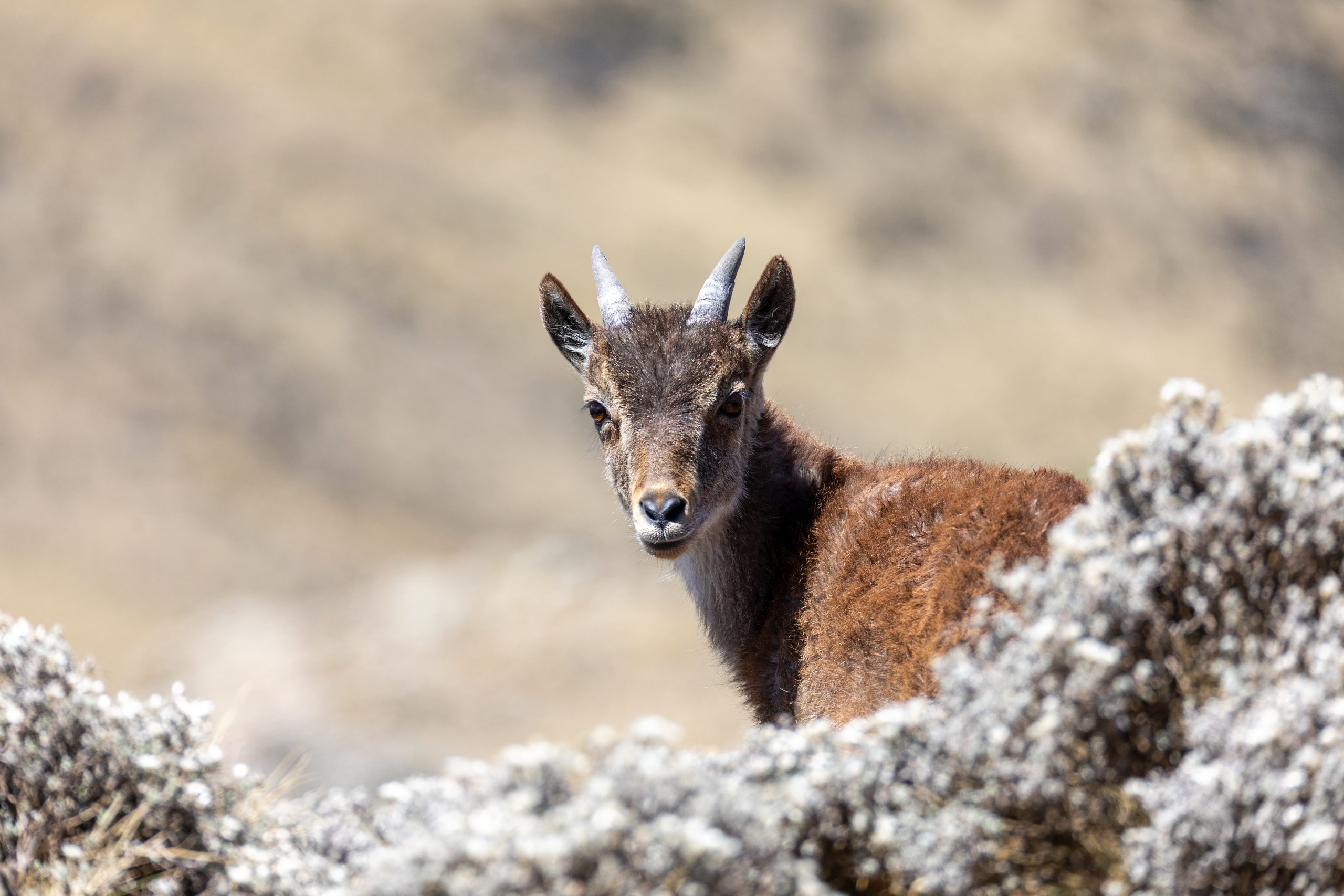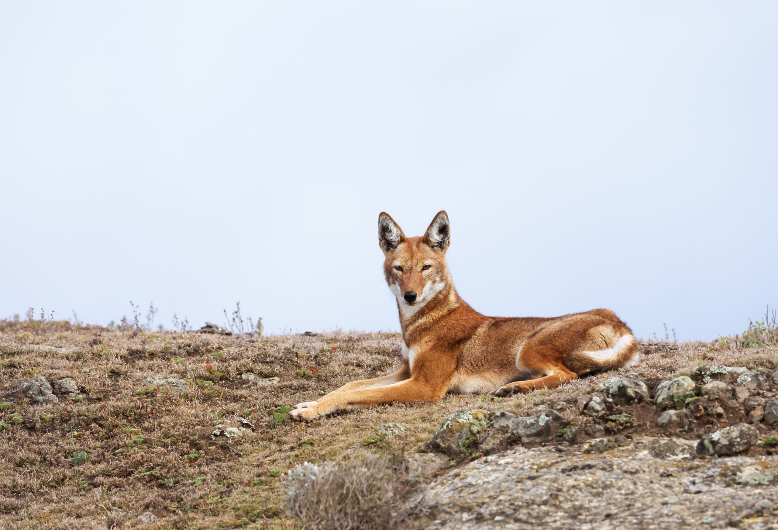 El lobo etíope habita en las tierras altas de Etiopía y es la especie de cánido más rara del mundo.