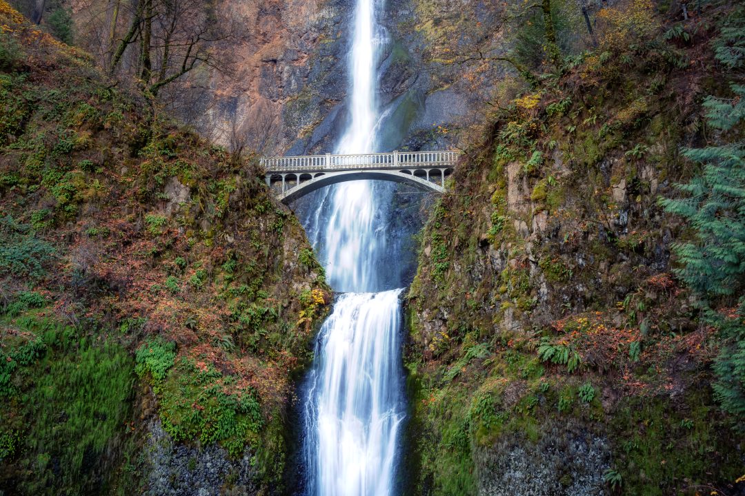 Trayecto hacia **Portland**. Si encaja por tiempos, **Japanese Garden** (otoño espectacular), **Multnomah Falls** en el Columbia River Gorge, y vistas del **Mount Hood** si está despejado.