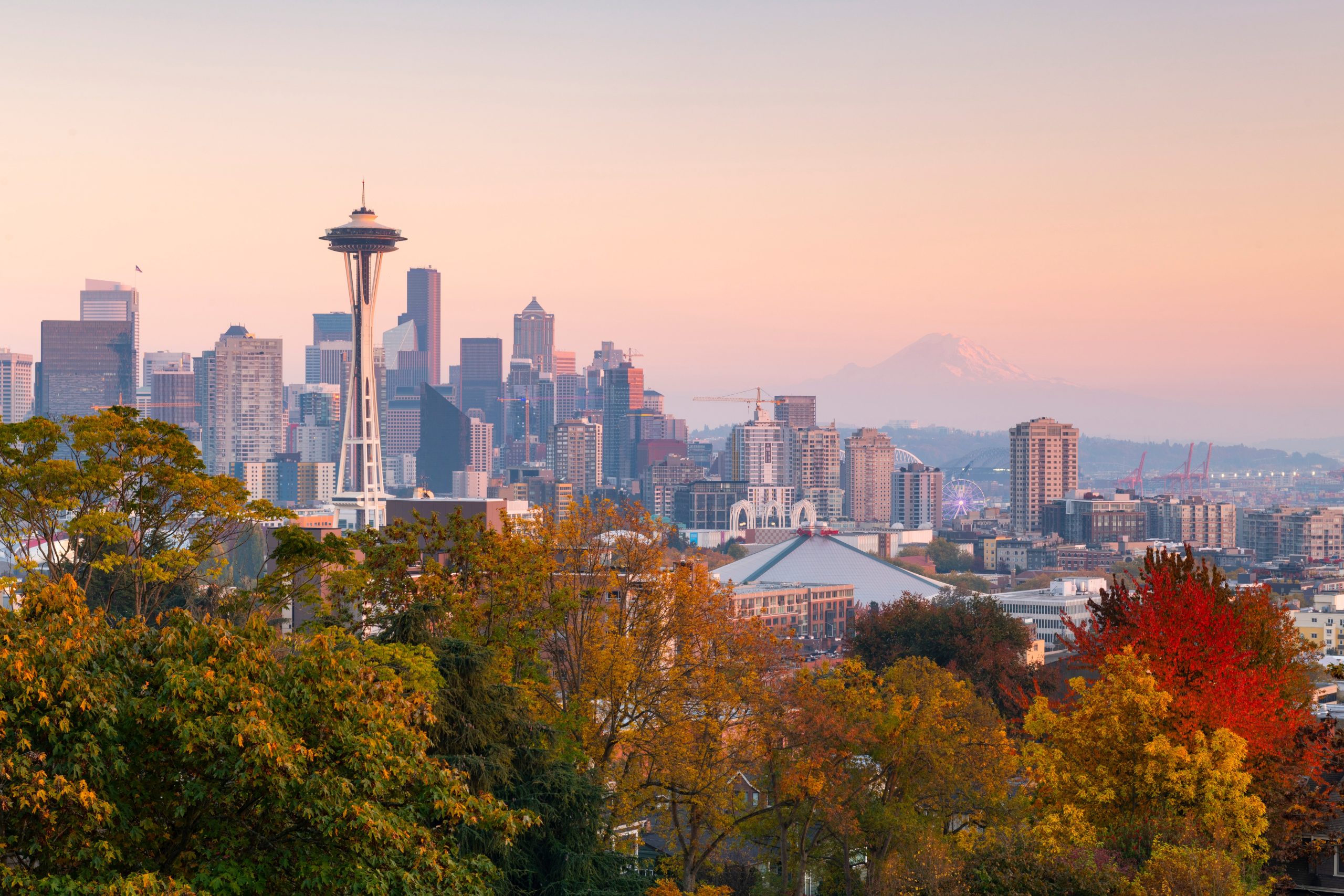 Pike Place Market, Gum Wall, waterfront y **Space Needle**. Cafés y miradores para skyline (Kerry Park).
