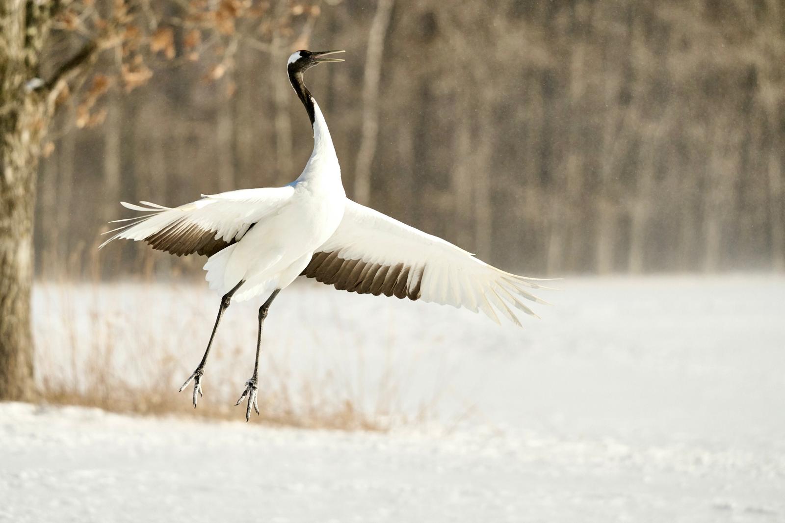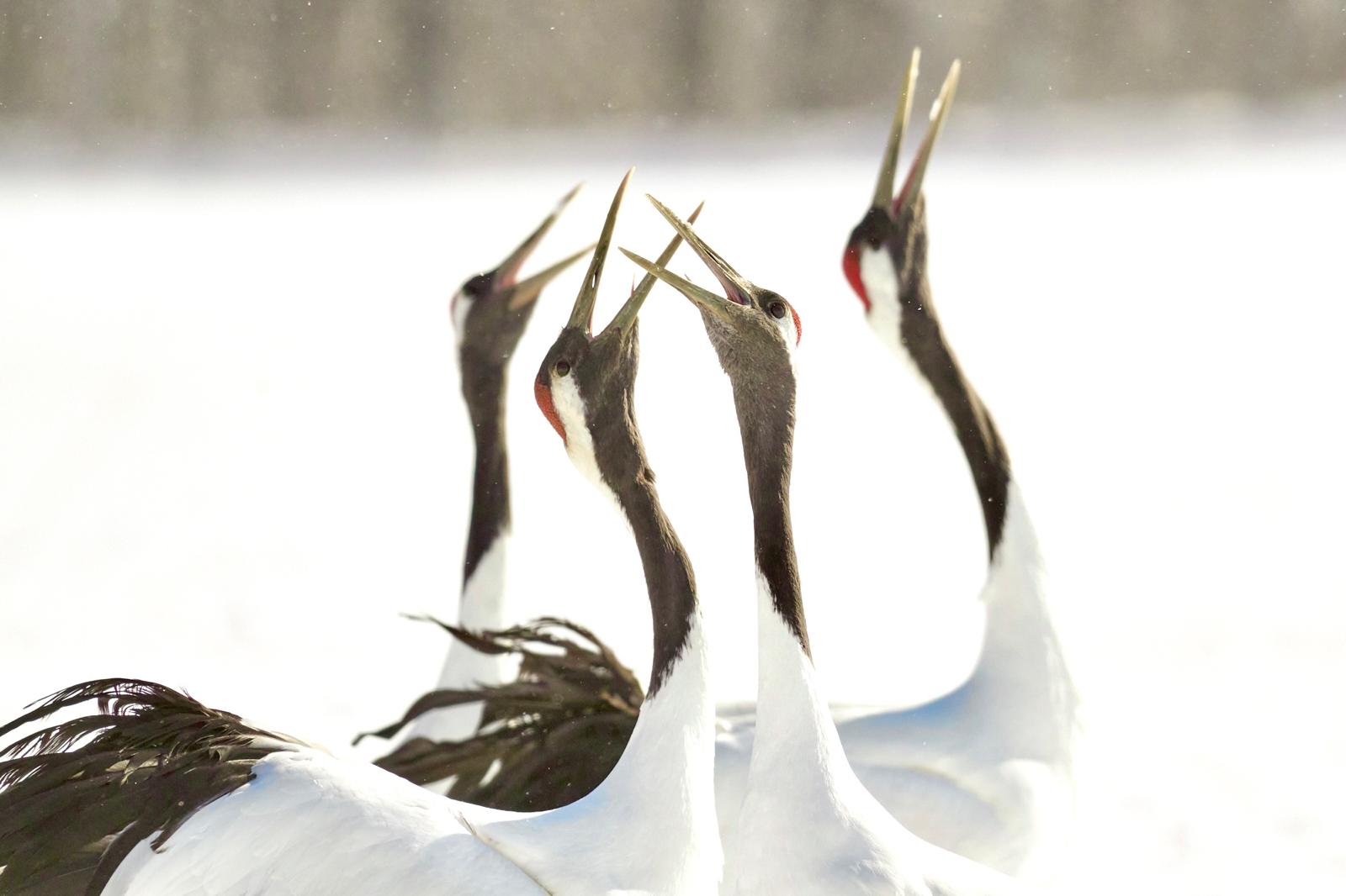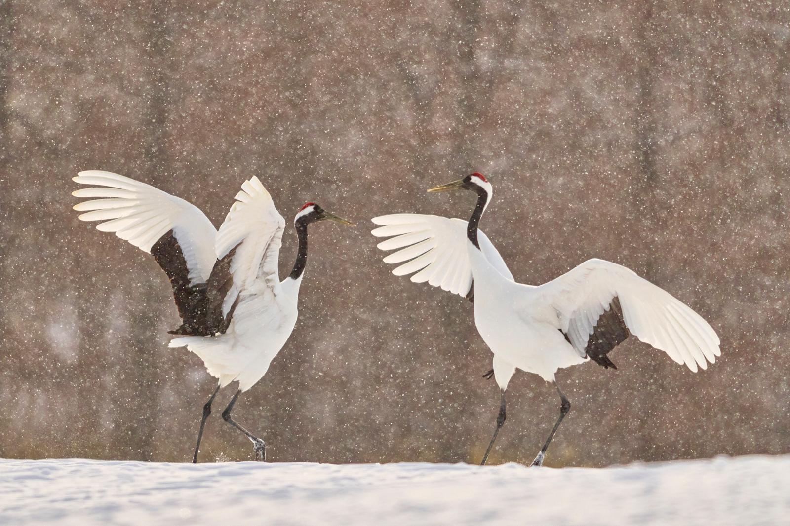 En la isla norteña de Hokkaido nos esperarán las espectaculares grullas japonesas con sus vistosas danzas de cortejo, las fotografiaremos cerca de Kushiro en dos jornadas y media consecutivas.