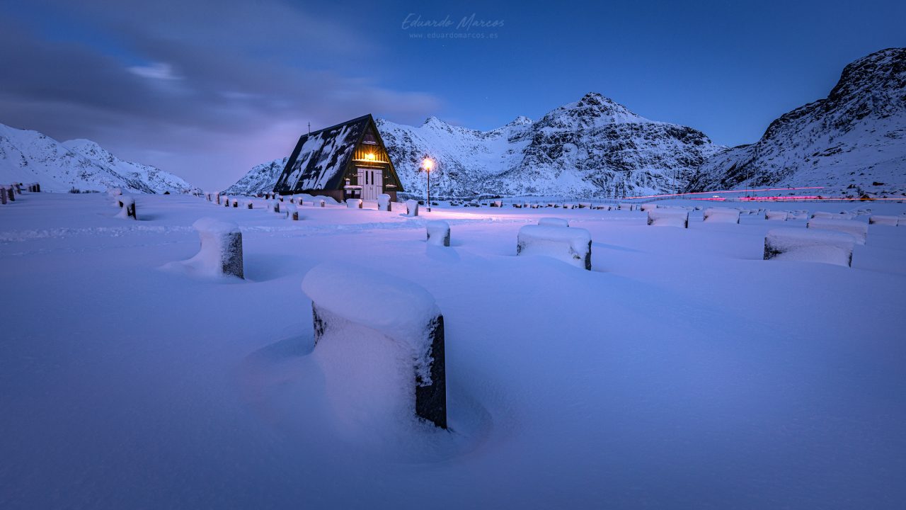 Iniciaremos la sesión de mañana en Hamnøy, una pequeña isla en la bahía desde la que se disfruta de una de las panorámicas más reconocibles de las Lofoten.