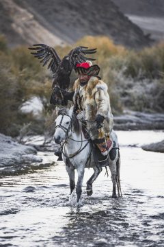 Es una visita ineludible, unas montañas desérticas de extraordinaria belleza y unas familias acogedoras que durante siglos han vivido del ganado criado en semilibertad y de la caza, adiestrando a sus imponentes águilas para tal fin.