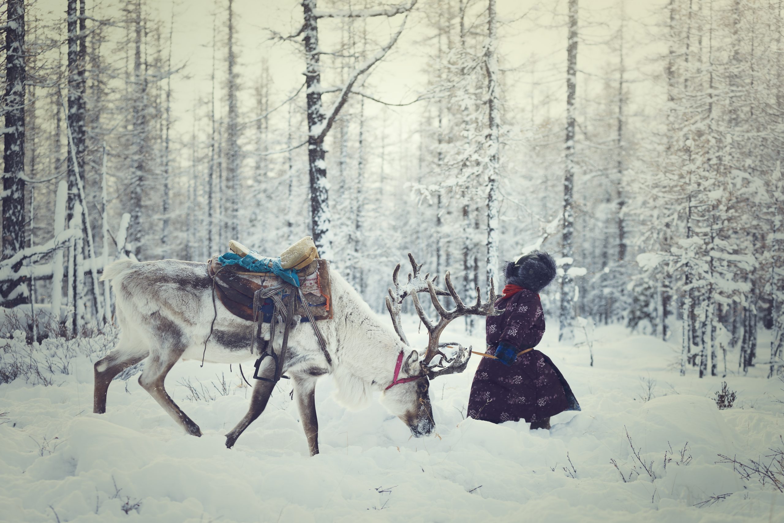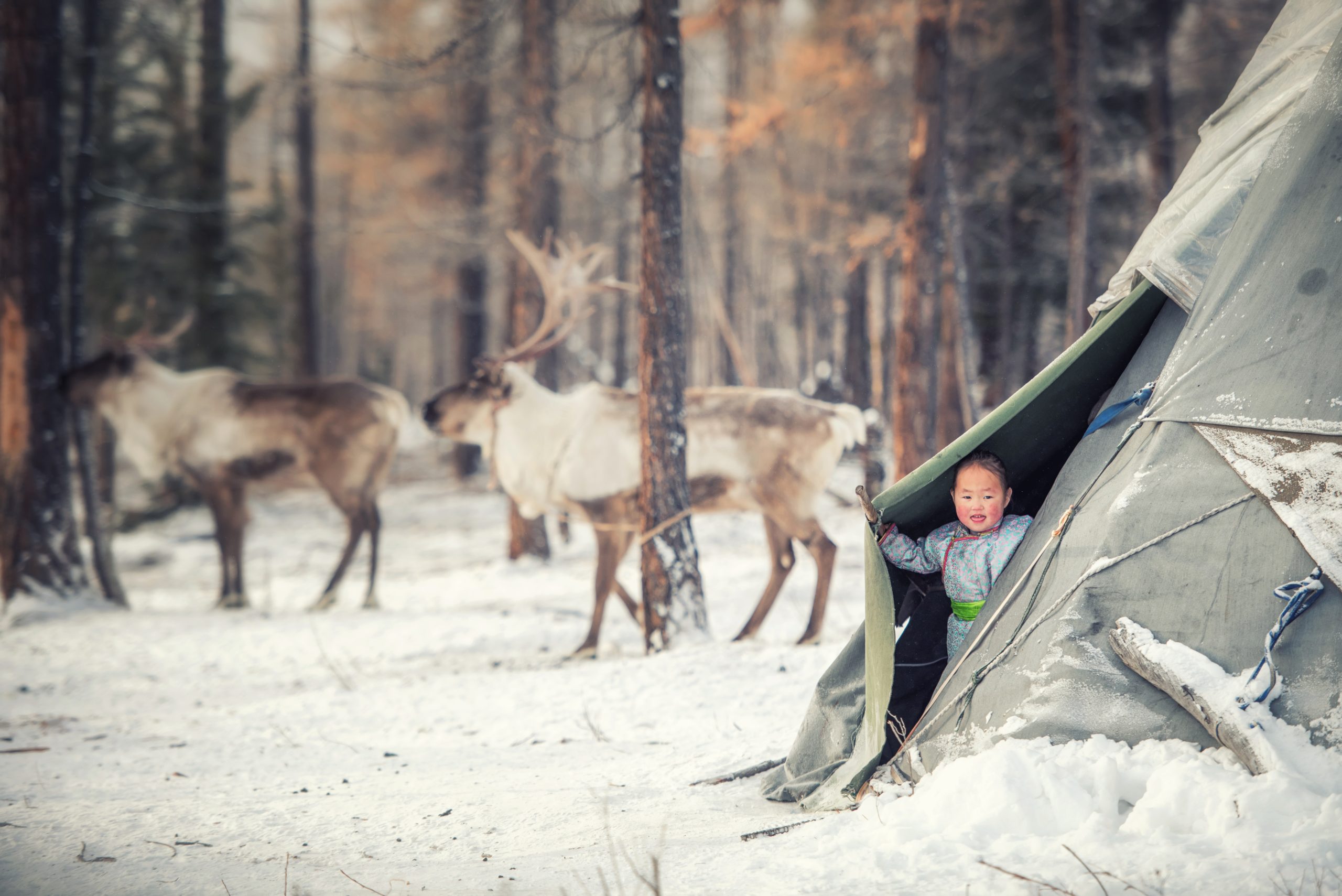 Hoy nos dirigiremos a la aldea de Tsagaan Nuur y continuaremos hacia la Taiga nevada para visitar a los Tsaatan (Renos), una de las comunidades más singulares y remotas de Mongolia.