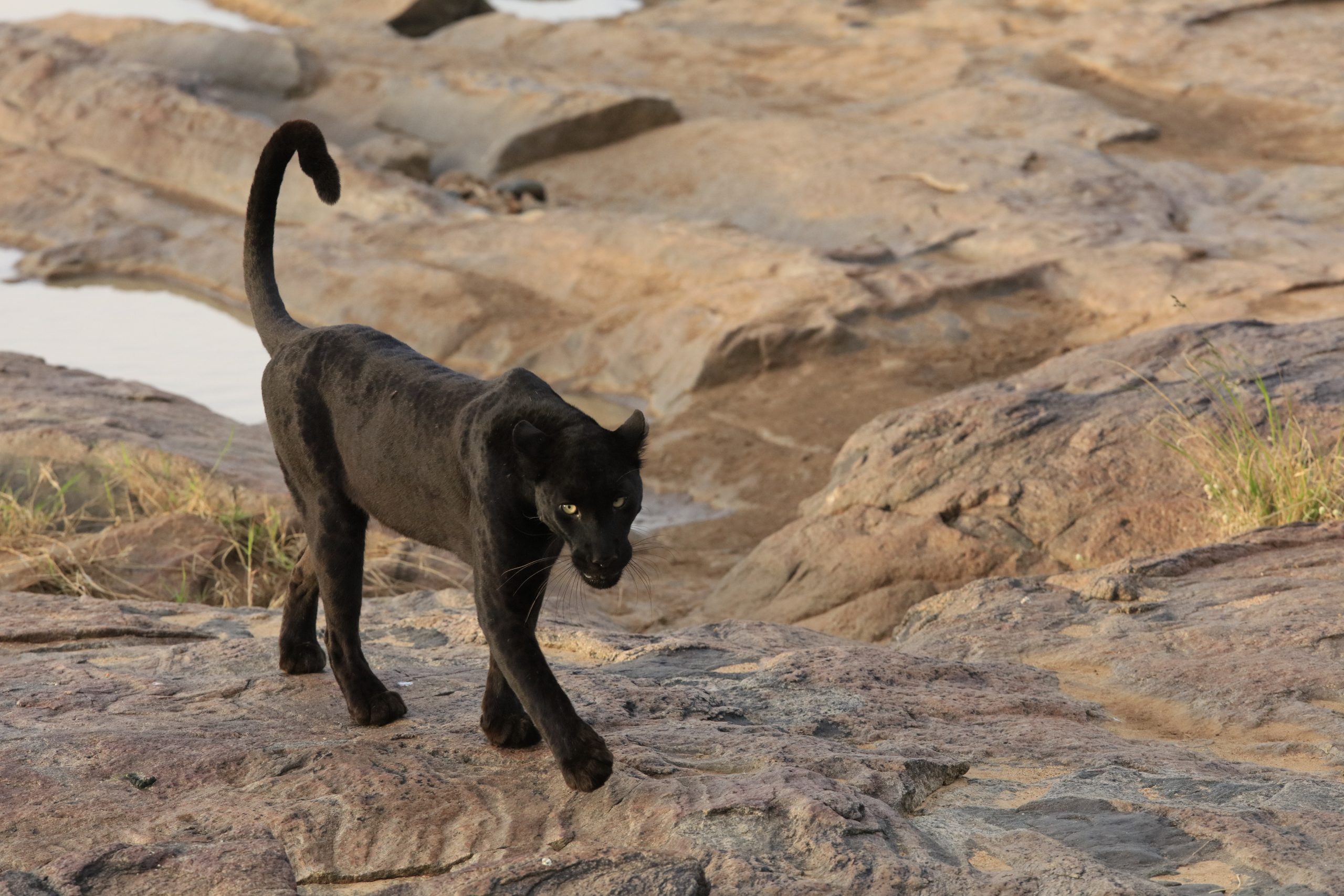 Por la tarde primer safari en vehículo privado para fotografía de pantera negra y de otra fauna africana.