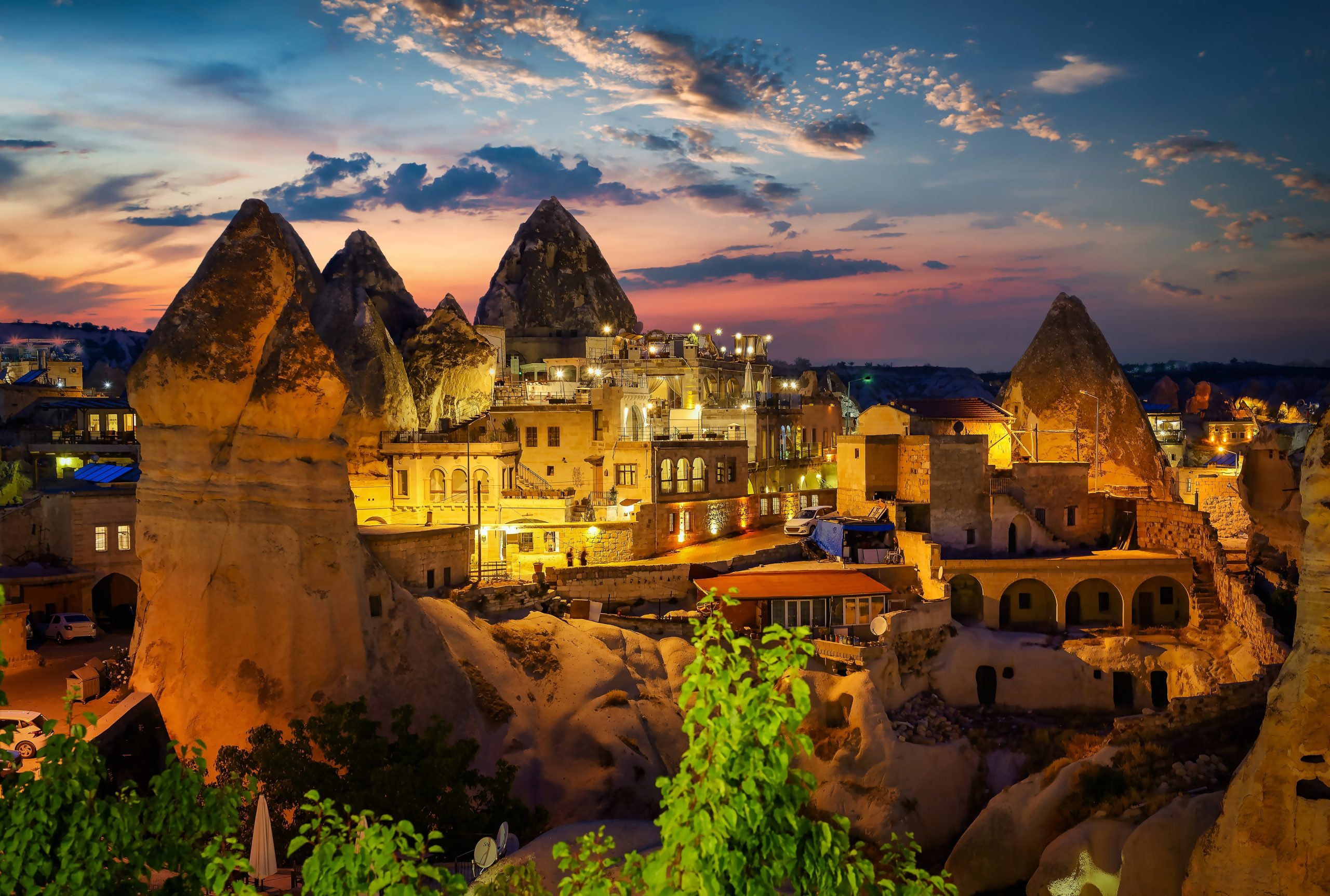 A la hora azul, fotografiaremos el Valle de las Palomas y el casco antiguo de Uchisar.