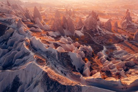 Primero nos dirigiremos al valle de Gorkundere. Daremos un breve paseo y fotografiaremos sus formaciones rocosas. Nuestra siguiente parada será el Valle del Amor, donde también daremos un breve paseo y fotografiaremos las formaciones rocosas. Después del almuerzo (alrededor de las 15:00), nos dirigiremos al pueblo de Hurmetci. Fotografiaremos caballos yilki, corriendo salvajes entre el polvo al atardecer. Tras la puesta de sol, regresaremos a nuestro hotel.
